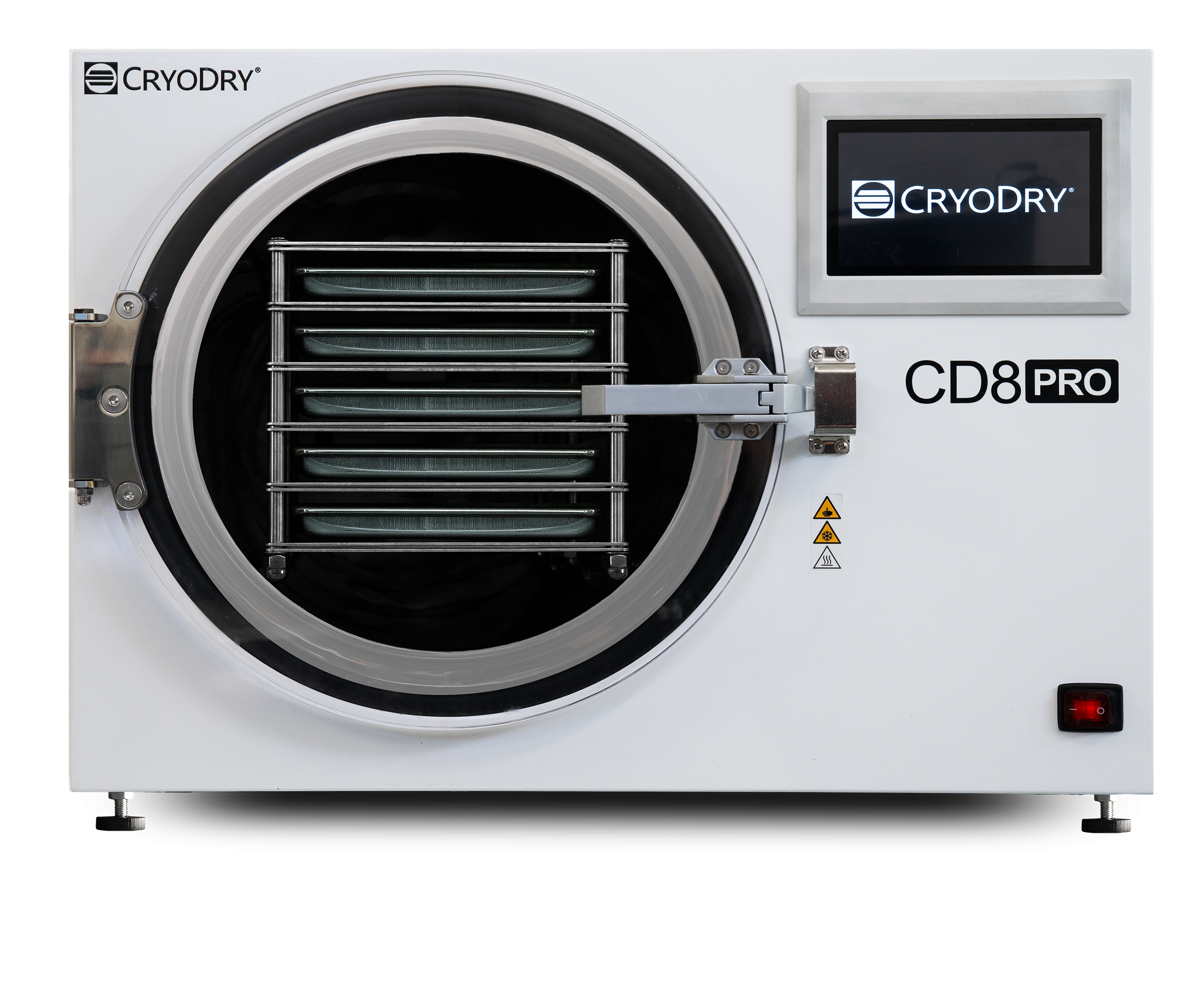 With a large 8 kg ice condenser capacity and the ability to remove up to 4 kg of ice per 24 hours, the CD8 Pro supports high-throughput applications. It also features an impressive 8,100 cm2 shelf area for large loads. The standard CD8 Pro package includes 5 cooled and electrically heated shelves in CryoDry’s unique Sandwich Shelf Stack Design, ensuring uniform heat distribution and temperature control ranging from −40°C to +60°C.
